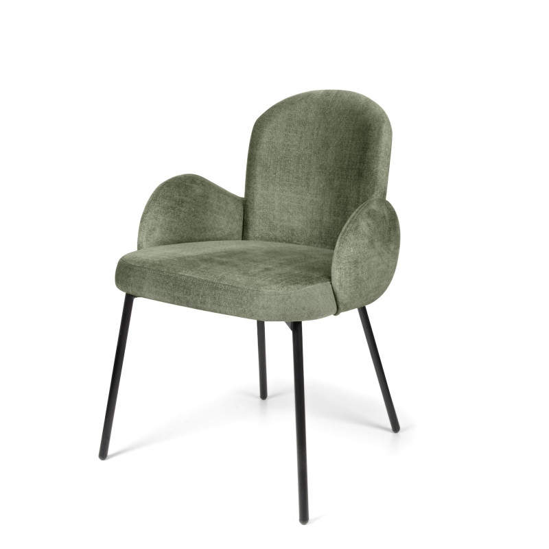 Verleihe deinem Esszimmer einen Hauch von modernem Retro-Stil mit diesem schicken Armlehnesessel. Die weiche, geschwungene Sitzschale in trendigem Grün bietet hervorragenden Komfort, während die schlanken, schwarzen Metallbeine für einen stabilen Stand und eine leichte Optik sorgen. Ein absoluter Hingucker für jeden Wohnbereich